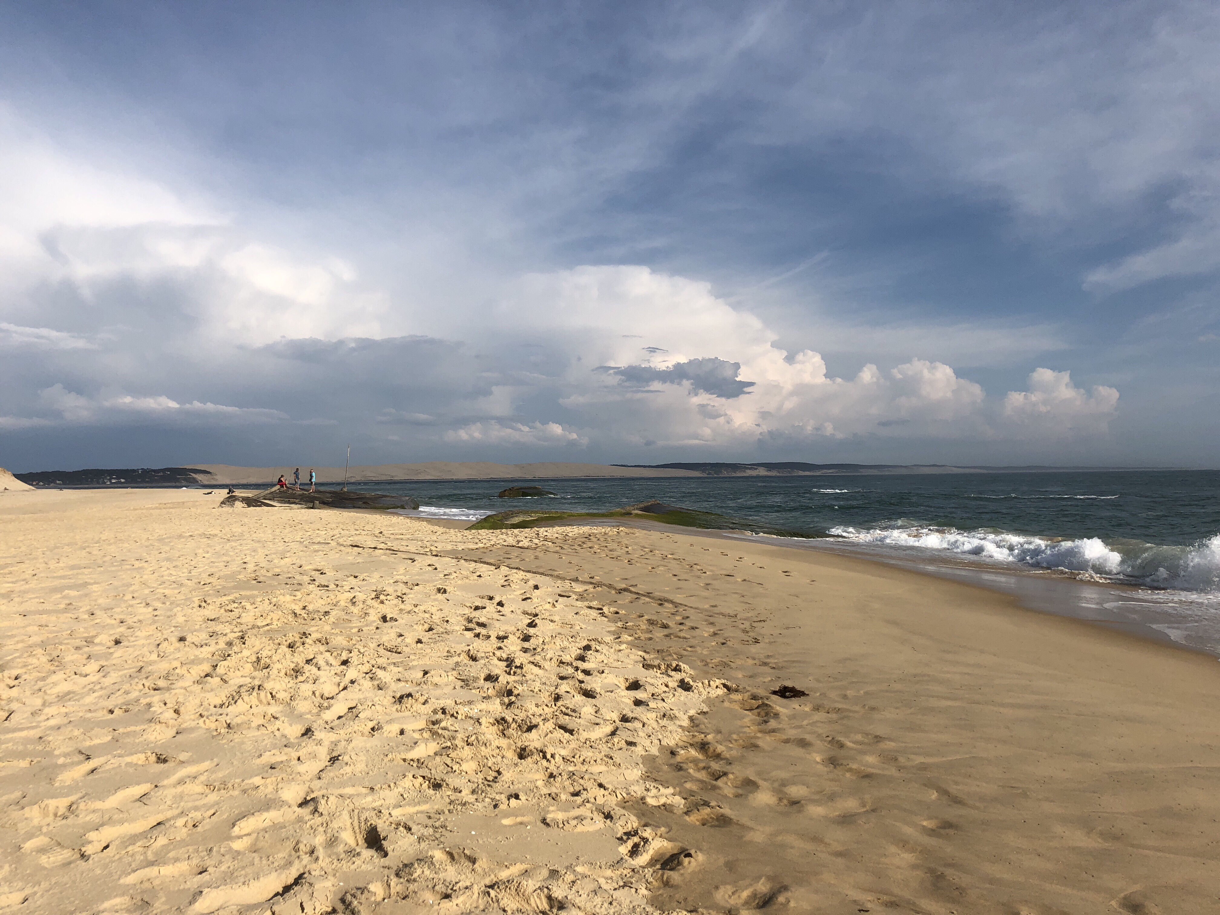 Wie jeden Morgen wundern wir uns wenn es schon 0900 ist. Nach kurzer Nahrungsaufnahme beschließen wir mal Proviant zu fassen und im Decathlon den Rest des richtigen Camperzubhör zu kaufen. Danach an der Düne etwas spielen und der Schirmbeherrschung den letzten Schliff geben. Die Belohnung auf der großen Düne. Nun sind wir bisher jeden Tag geflogen ;-). Tag 4 ist anfangs etwas bedeckt und nach einzelnen Regentropfen beschließen wir Richtung Cap Ferret zu fahren. Beeindruckend die etwas andere Perspektive der Düne.